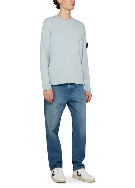 Stone Island's Round Neck sweater is a stylish and versatile garment. It features a logo patch on the sleeve and a logo at the back label, adding a touch of brand recognition. This long-sleeved, crew neck sweater is perfect for layering and is made with high-quality materials for durability and comfort.