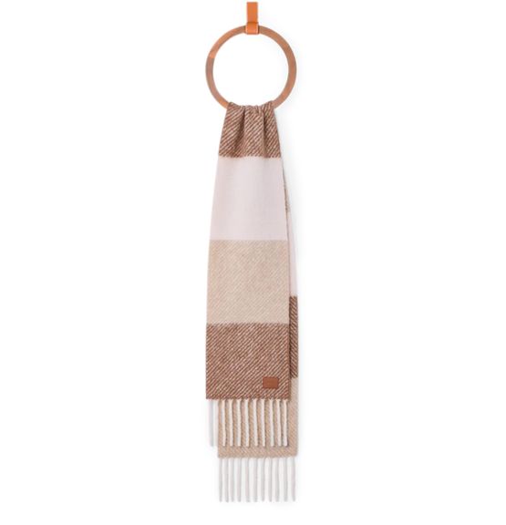 Reveal Loewe's scarf in alpaca and wool, featuring a refined checked pattern and soft fringed edges. The embossed logo adds a subtle signature touch, making this accessory a standout addition to any modern wardrobe.