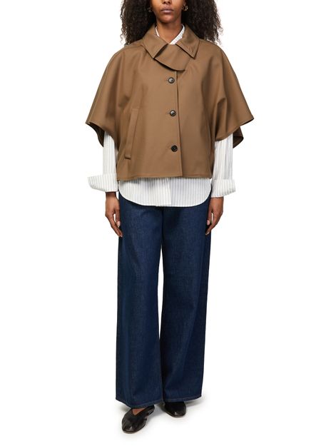 Reveal Max Mara's single-breasted cape, crafted with short sleeves and a refined button fastening. The elegant silhouette and subtle detailing offer a modern twist, making it a versatile piece for both casual and sophisticated ensembles. Experience effortless style with this standout design.