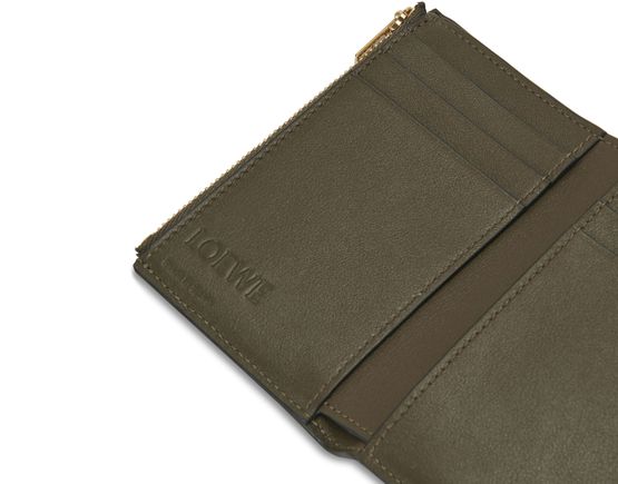 You can easily store all your essentials in this small Vertical wallet by Loewe. Its grained leather design folds up using a leather tie closed by a press-stud.
