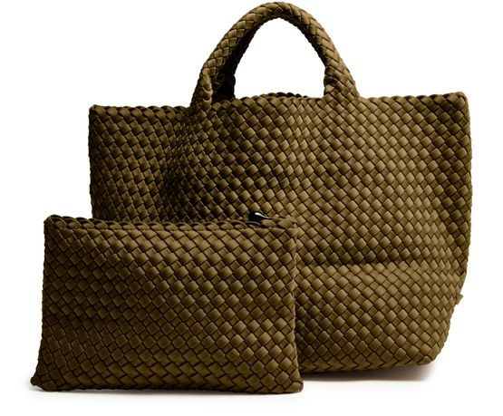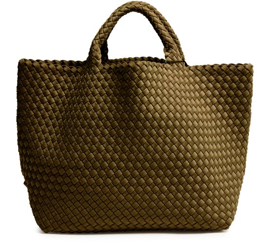 Reveal Naghedi's St Barths large tote, crafted in open weave for a contemporary edge. The double handles offer versatile carrying, while the spacious single compartment ensures effortless organization. This tote blends modern design with practical elegance, making it an essential for refined, everyday style.
