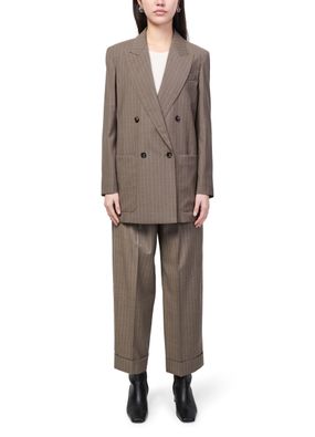 Reveal Max Mara's striped formal pant, designed with ankle length and front pleating for a refined silhouette. The concealed closure and welt pockets add sophistication, while visible stitching and back darts ensure a tailored fit. Perfect for elevating both professional and contemporary wardrobes.