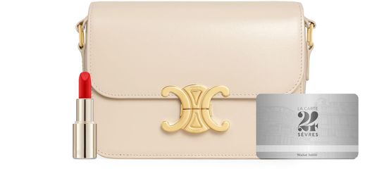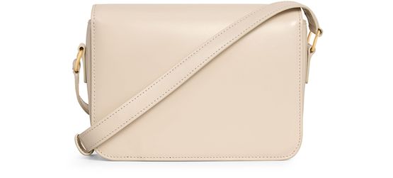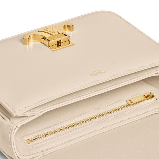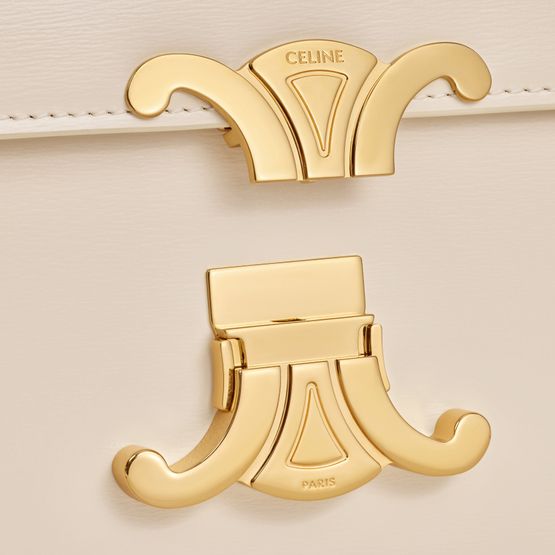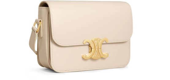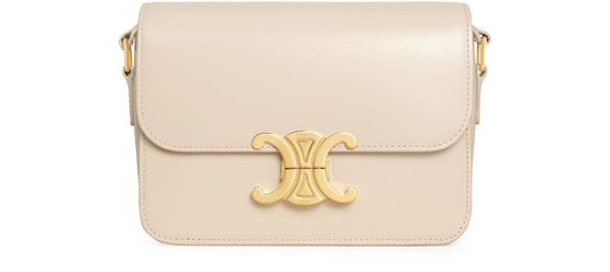 The teen Triomphe bag is designed by Celine. It combines polished calfskin and soft lines with an elegant golden buckle.