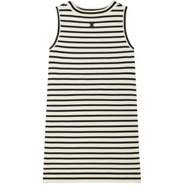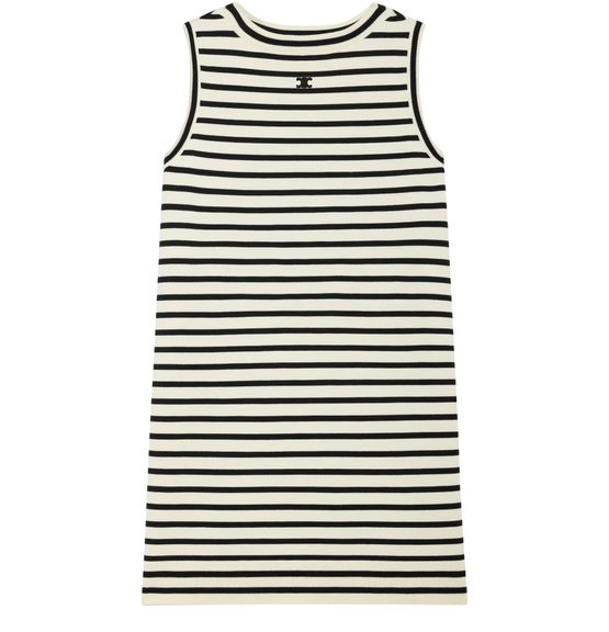 Unveil Celine's Triomphe marinière mini dress in wool. This dress features a distinctive Triomphe patch and offers a classic fit with a chic mini length. The ribbed trim adds a touch of elegance to its design, making it a perfect choice for a modern wardrobe.