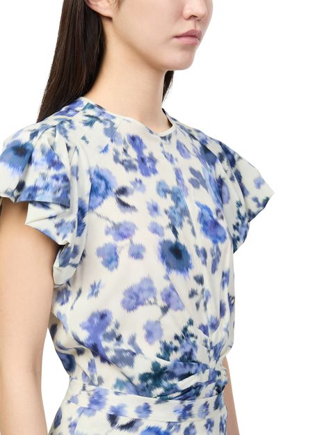 Reveal Isabel Marant's Tullya short sleeves top, featuring a crew neck and ruffled sleeves for a refined silhouette. The floral print adds a fresh, modern touch, making this top a standout piece for versatile styling, whether paired with tailored pants or your favorite denim.