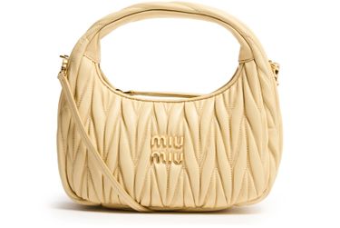 Unveil the Miu Miu Wander quilted nappa leather hobo bag, a masterpiece of style and functionality. Its metallic lettering and herringbone detail exude sophistication. The single handle and detachable strap offer versatility, while the zipper closure ensures your essentials are secure within the padded texture.