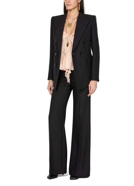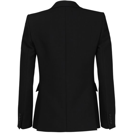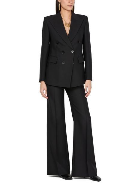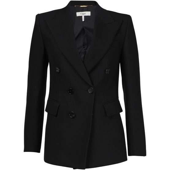 Chloé's wool knit tailored jacket showcases a sophisticated double-breasted silhouette with a notched collar. Its long sleeves and elegant design are complemented by two front flap pockets and a chic breast pocket. Perfect for layering, this jacket effortlessly combines style and functionality for any occasion.