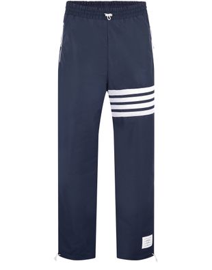 These men's 4-Bar trousers with Thom Browne's iconic 4 stripes are perfect for casual wear. This model features the iconic logo patch and has drawstrings at the waist and ankles.