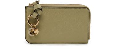 Chloé's Alphabet mini wallet features a practical zipper closure for security and organization. The front logo and brand motif add a stylish touch to the design. With its compact size, this wallet is perfect for carrying essentials while on the go. It is a chic and functional accessory for everyday use.