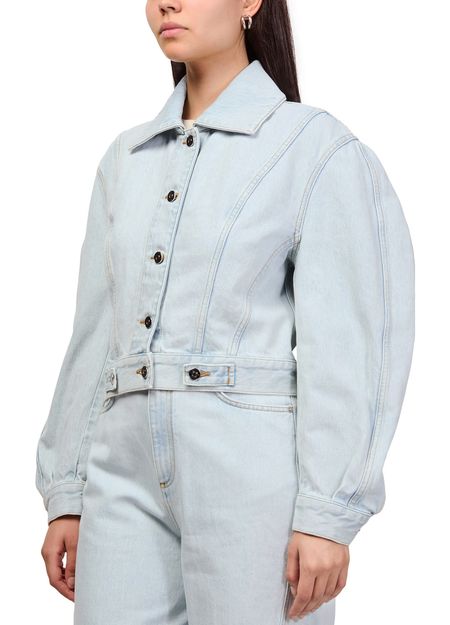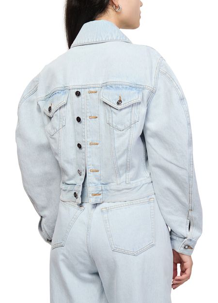 Reveal Givenchy'sBack-to-front Cocoon jacket, crafted in light blue denim with a button fastening and long sleeves for a modern silhouette. The embroidered logo and topstitched edges add refined detail, while the versatile design transitions seamlessly from day to night, making it a standout piece for any wardrobe.