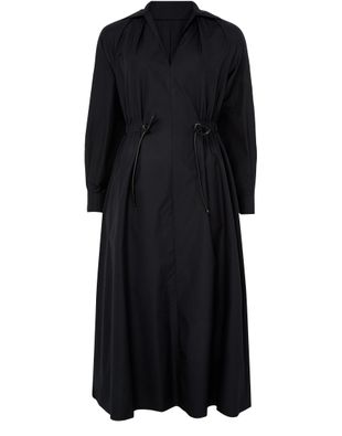 • Description : Midi dress, v-neck, raglan sleeves, long-sleeved, side pockets, adjustable drawstring waist, elasticated waist.