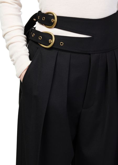 Reveal Chloe's belted pants offer a refined silhouette with an ankle-length cut and pleats on the front. The belted waist and hook fastening ensure a tailored fit, while side pockets and belt loops add practical flair. Perfect for elevating both formal and everyday ensembles.