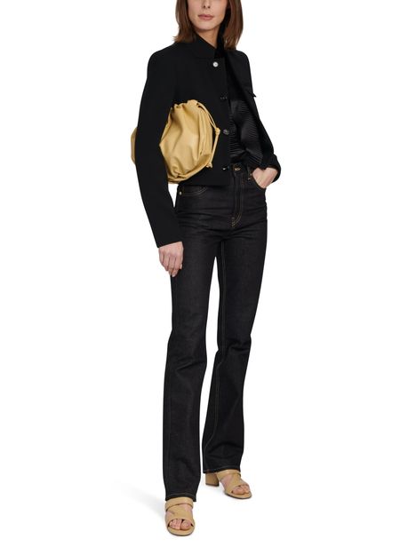 Bottega Veneta's Bulb bag is a textured leather bag with a slender strap and pleated details. Its drawstring closure adds a touch of modernity to its classic design. The artisan craftsmanship is evident in every detail, making it a timeless and sophisticated piece for any wardrobe.