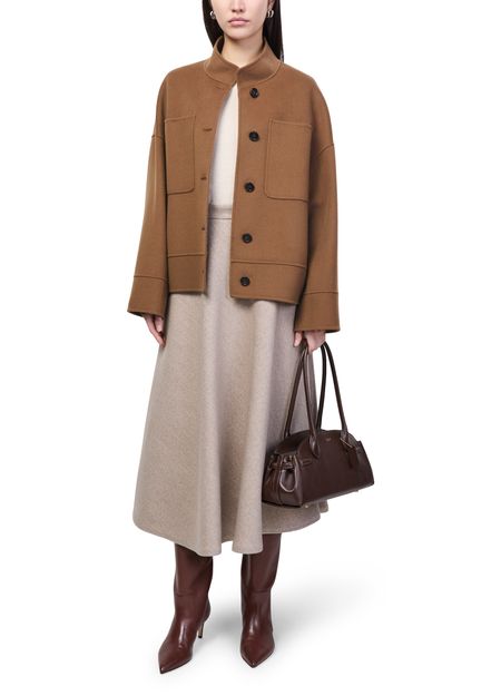 Reveal S Max Mara buttoned jacket, a short, long-sleeved silhouette with a high neck and button fastening. Distinctive patch pockets and refined patch details add a modern edge, while its versatile design transitions seamlessly from day to night, making it a standout in any contemporary wardrobe.