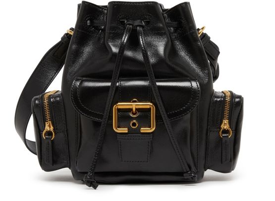 Chloé's Camera bag is a stylish small bucket bag with a drawstring closure, featuring a single compartment and interior patch pockets for organization. Its gold finish and appliquéd logo add a touch of elegance. With a wide adjustable strap, it can be worn crossbody or on the shoulder, showcasing visible topstitching and a single handle.