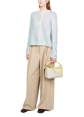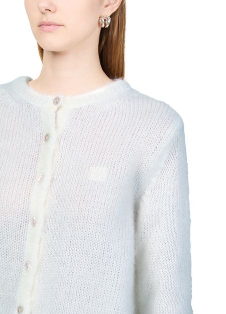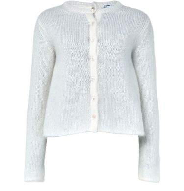 Introducing Loewe's Mohair blend cardigan, a masterpiece of modern elegance. This long-sleeved piece features a refined button fastening, offering both style and functionality. Crafted with meticulous attention to detail, it seamlessly blends comfort with sophistication, making it a versatile addition to any wardrobe.