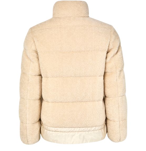 Reveal Moncler's short puffer coat, crafted from warm fabric with a padded texture for a modern silhouette. The long sleeves, collar, and zipper closure offer both comfort and style, while side pockets and an embroidered logo add refined, functional touches for versatile everyday wear.