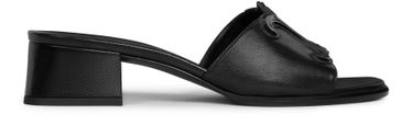 Step into elegance with Celine's Clemence mules, crafted from luxurious lambskin and patent calfskin. The wide squared heel offers stability, while the almond toe shape adds sophistication. Adorned with a large Triomphe patch, these slip-on mules feature a plush leather insole and durable leather outsole, perfect for any stylish occasion.