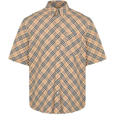 Burberry's Check cotton shirt showcases a stylish checked pattern with a front buttoned closure and a classic shirt collar. Its short-sleeved design features visible stitching and practical patch pockets, including a breast pocket, making it the perfect choice for casual shirts that blend comfort and sophistication effortlessly.