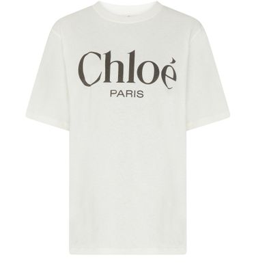 Chloé's logo t-shirt showcases a regular length, short-sleeved design with a classic crew neck. Adorned with a chest logo, the printed and appliquéd logo adds a touch of sophistication. The visible stitching enhances its quality, making it a perfect blend of casual elegance and everyday comfort for any wardrobe.