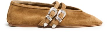 Reveal Le Monde Beryl Claudia Mary-Jane ballet flats, crafted from supple suede with a pointed closed toe and wide buckled straps. The low, flat heel and visible stitching add a refined touch, while the very thin sole ensures a sleek, modern silhouette for any occasion.