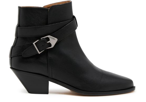 Step into the world of Isabel Marant's with the Deivy ankle boots. Featuring a high-top upper and a stylish buckled strap, these boots boast visible stitching that enhances their unique design. The pointed toe and low block heel offer both elegance and comfort, making them a versatile addition to any wardrobe.