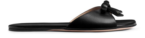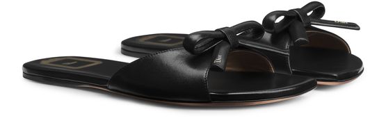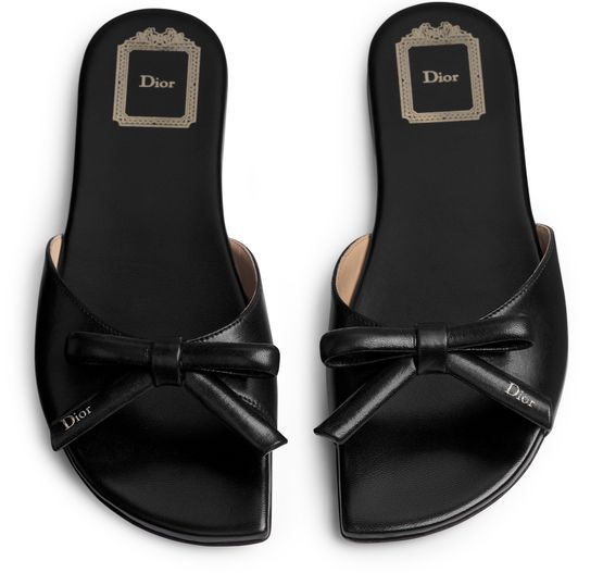Unveil Dior's Bow Slide, featuring a captivating gold-tone Dior signature adorning the bow. The insole is elegantly finished with the iconic Dior Médaillon signature, ensuring a sophisticated touch with every step.