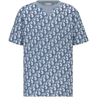Embrace Dior's Dior Oblique T-Shirt, featuring a striking blue and white allover Dior Oblique print. This piece is crafted with a ribbed crew neck enhanced with V-neck topstitching, adding a touch of elegance to your casual wardrobe.
