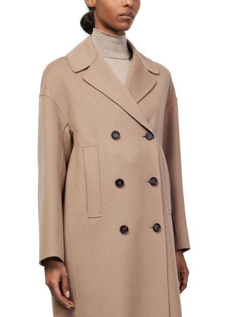 Reveal S Max Mara double-breasted coat, crafted from warm fabric for a refined knee-length silhouette. The classic collar and long sleeves offer timeless appeal, while side pockets and a double-breasted closure add both function and style. Perfect for elevating any ensemble with effortless sophistication.