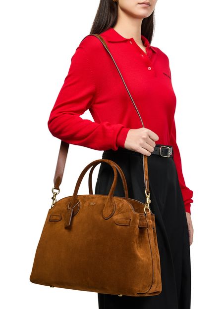 Reveal Coach's Empire Carryall 40 tote bag, crafted from sumptuous suede and adorned with a decorative label featuring the embossed Coach logo. Double handles and visible stitching add a refined touch, while the front logo ensures a signature finish for this modern, versatile tote.