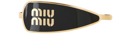 Miu Miu's Enamelled metal hair clip showcases a sleek design with a stunning gold finish. Adorned with the brand's logo in gold letters at the front, it effortlessly elevates any hairstyle. Perfect for adding a touch of elegance, this accessory transforms everyday looks into chic statements of style.