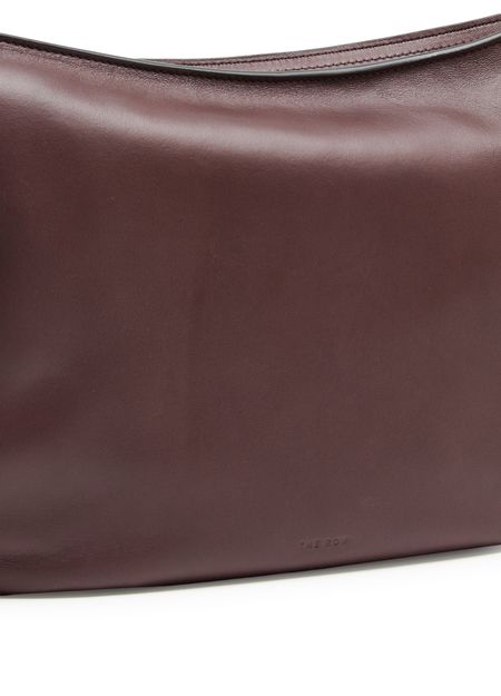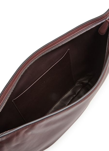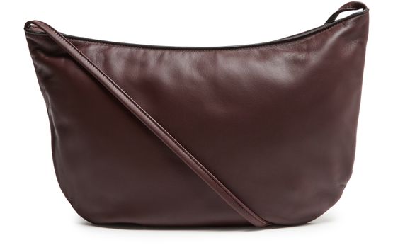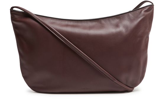 Reveal The Row's E/W Izzy crossbody bag, crafted from smooth leather with a refined thin strap. Visible stitching and a single compartment highlight its modern design, while a zipper closure and open interior pocket offer practical sophistication for everyday essentials.