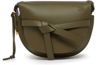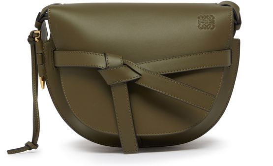 Featuring leather straps tied at the front, the small Gate bag incorporates sophisticated accents. Loewe signs its creation with its jacquard logo and monogram along the length of the shoulder strap.
