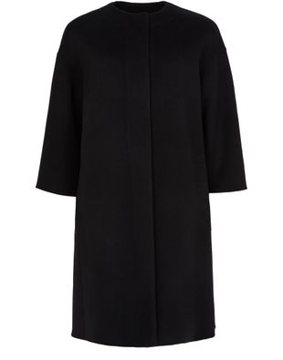 Reveal S Max Mara's Helene coat, a stunning blend of modern elegance and classic style. The boxy fit and collarless design offer a unique silhouette, while the three-quarter sleeves add a chic touch. A concealed closure completes the look, making it a versatile choice for any occasion.