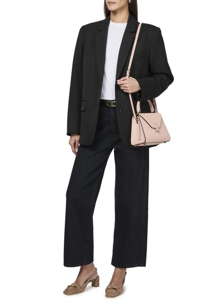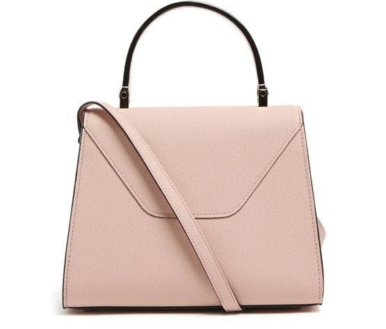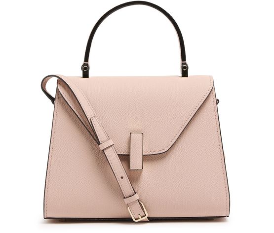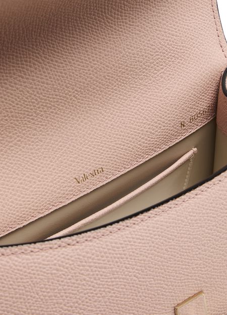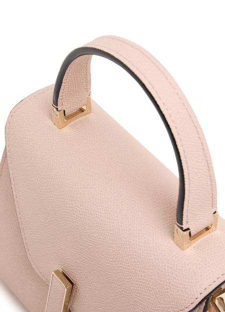 Reveal Valextra's Iside mini bag, crafted from grained leather with a refined gold clasp and visible stitching. The single handle and adjustable thin strap offer versatile styling, while the interior pocket and single compartment ensure practical elegance for your essentials.