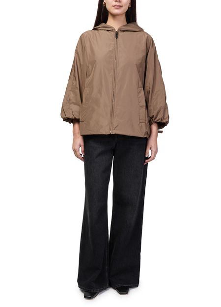 Reveal S Max Mara's short raincoat Kway, a modern windbreaker with a cropped silhouette and three-quarter sleeves. The sleek zipper closure and practical side pockets add functionality, while the lightweight design ensures effortless layering. Perfect for elevating everyday looks, this piece transitions seamlessly from city strolls to weekend escapes.