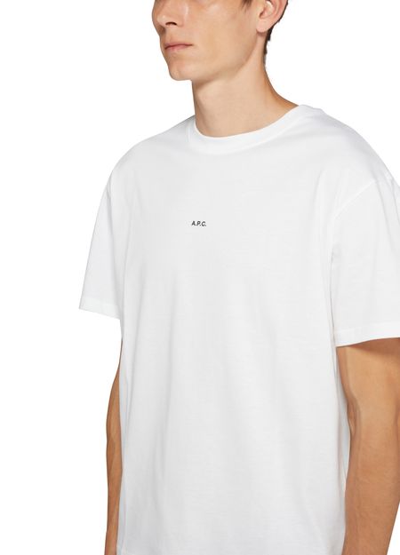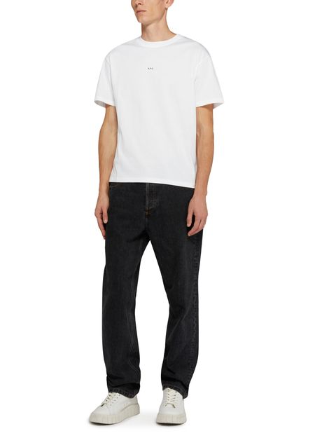 This short-sleeved t-shirt from APC features a classic round neck and ribbed detailing for a comfortable fit. The visible stitching adds a subtle touch of craftsmanship. The logo printed on the front accents the straight cut design, creating a minimalist and timeless look suitable for any casual occasion.