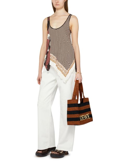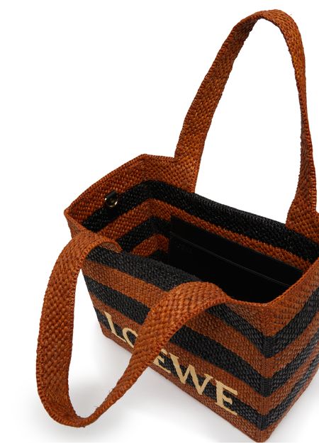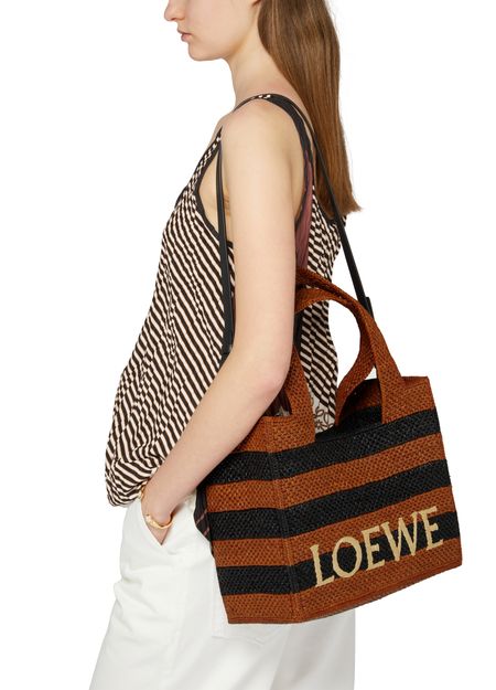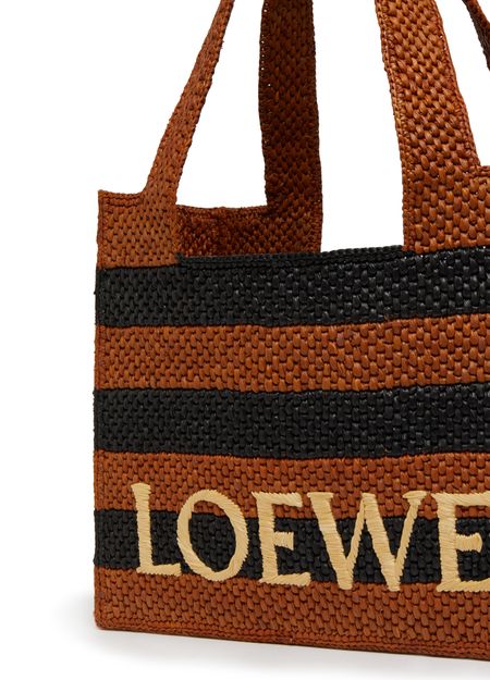 Loewe's Large LOEWE Font Tote in raffia features a front logo, wide strap, and double handles for easy carrying. The interior patch pockets provide convenient storage for your essentials.