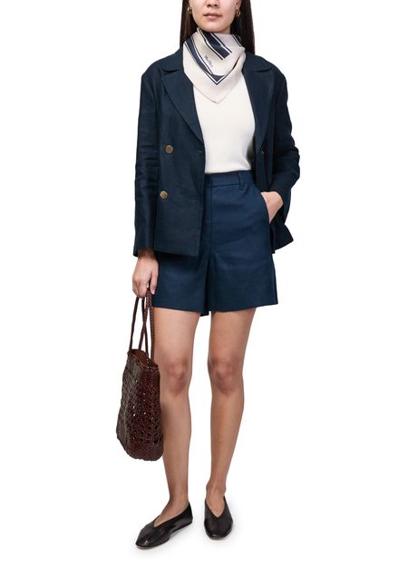 Reveal S Max Mara's high-rise shorts, crafted with a tailored silhouette and visible stitching for a refined finish. Featuring a buttoned zipper closure, belt loops, and practical front and back pockets, these shorts offer effortless versatility for both relaxed weekends and polished daytime looks.