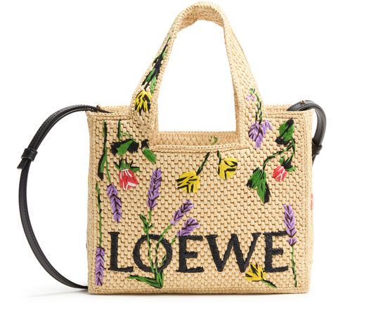LOEWE Font Flowers small raffia tote bag