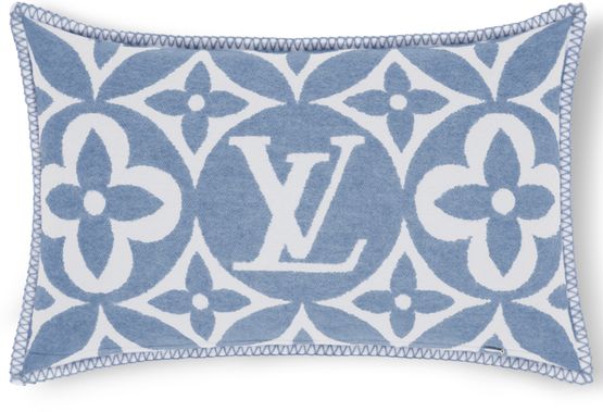The bold new LV Medallion pattern gives this ultra-comfortable rectangular cushion a striking signature look. Jacquard-woven into a sumptuous blend of wool and cashmere, outsized Monogram Flowers are arrayed around the LV Initials in the center. A versatile accessory that combines chic understated colors with plush warmth.