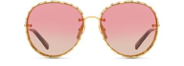 The LV Ring Round sunglasses offer a delicate interpretation of the chain motif. The round gradient lenses are encircled by fine links that incorporate the iconic LV Initials and Monogram Flowers. The ultra-slender temples of this design are engraved with the Louis Vuitton signature for a House finishing touch.
