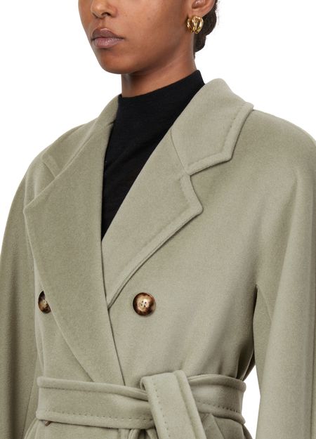Discover Max Mara's Madame 101801 belted coat, a masterpiece of elegance and style. With its regular fit and knee-length design, this double-breasted coat features a sophisticated collar and long sleeves. Flap pockets add functional flair, making it a versatile choice for any occasion.