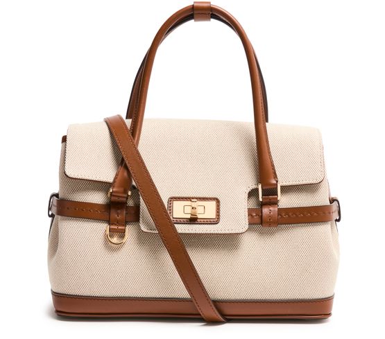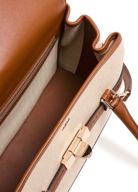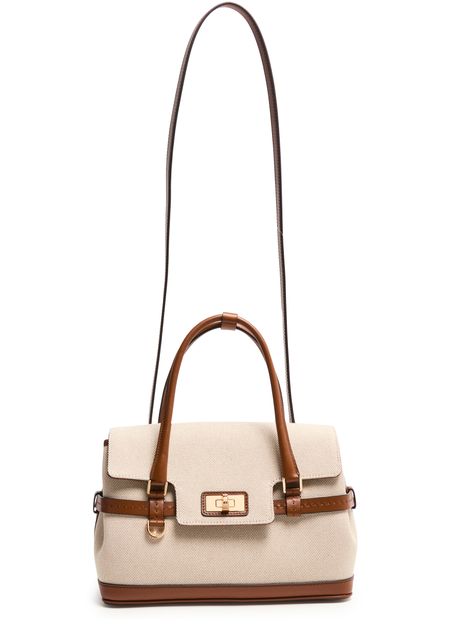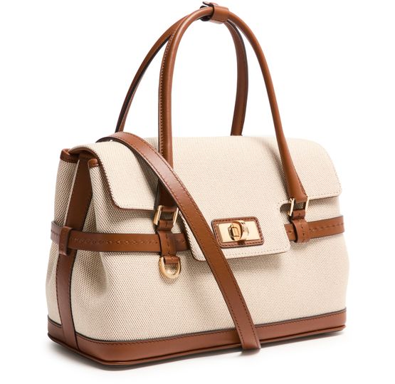 • Description : Shoulder bag, crossbody bag, double handles, leather handle, thin strap, adjustable strap, front logo, twist lock closure, zippered interior pocket, visible topstitching.