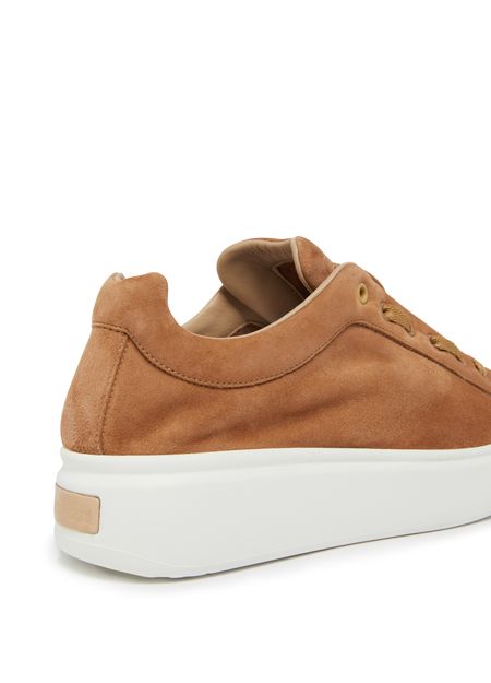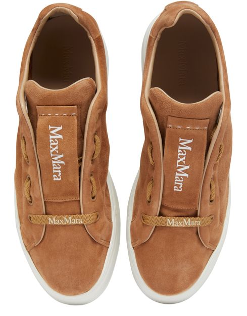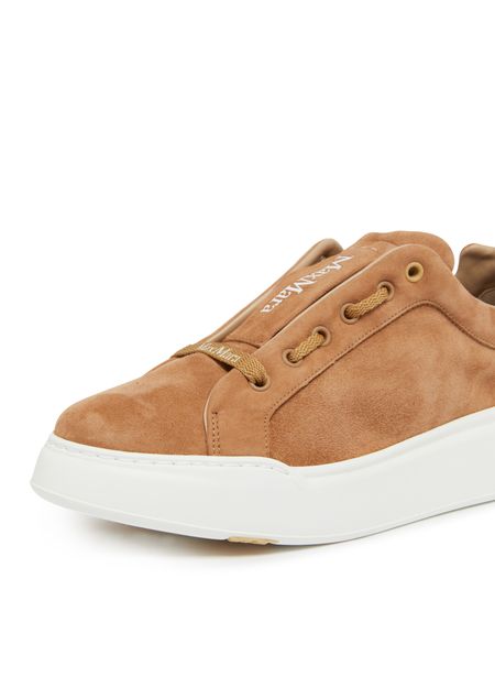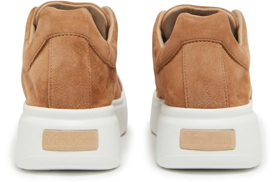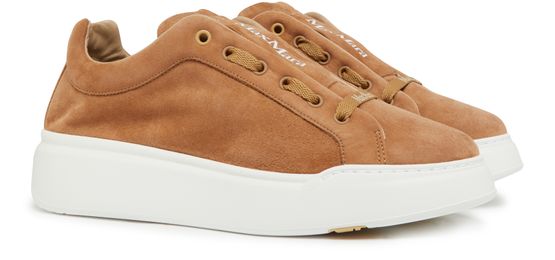 Max Mara's Maxisf sneakers feature a thick outer sole for added comfort and durability. The round toe design provides a classic and versatile look. These closed sneakers are adorned with a logo at the back for a touch of branding. The front logo adds a subtle yet stylish detail to the overall design.
