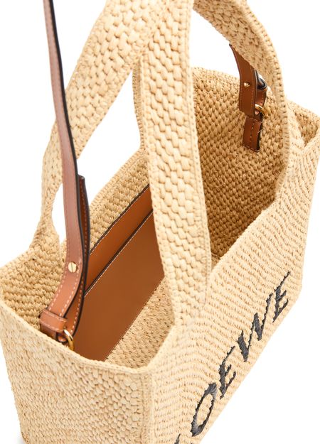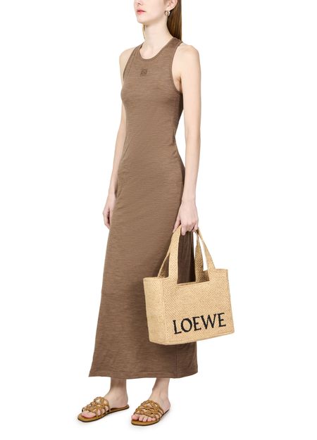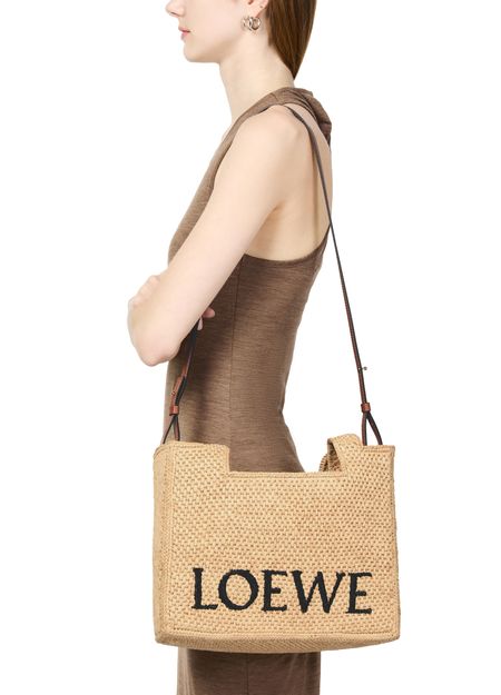 The Loewe Medium tote bag is a versatile and stylish accessory. This medium-sized bag features a spacious interior, making it perfect for everyday use. It can be worn in the hand or on the shoulder, thanks to its two handles. The bag is adorned with an embroidered logo, adding a touch of elegance to any outfit.