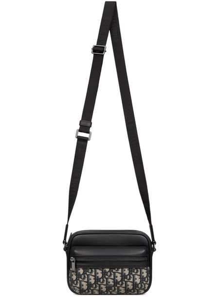 Unveil Dior's Mini Rider 2.0 Zipped Messenger Bag, a statement piece with zipper closure, single handle, and front logo. The brand's monogram in silver letters, external pockets, and front pocket add elegance, while the adjustable wide strap offers versatile crossbody wear and visible topstitching enhances its style.