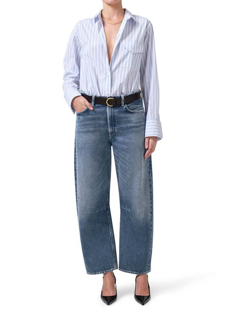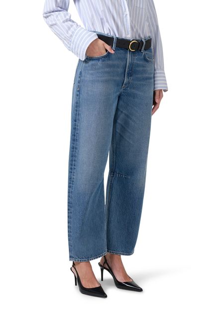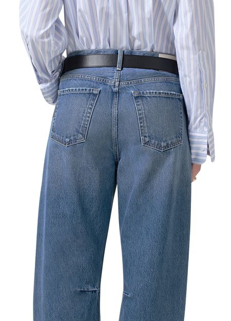 Reveal Citizens of Humanity's Miro jeans, featuring buttoned and concealed zipper closure, belt loops, and distinctive visible stitching. These denim creations boast a straight cut and a low-waisted fit, complemented by an ankle length and five-pocket style for a contemporary appeal.