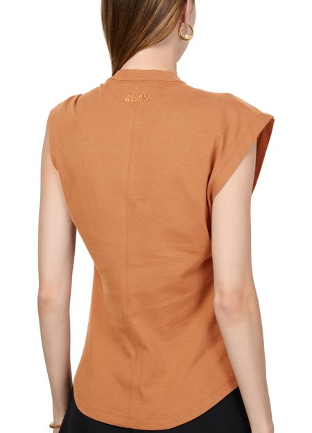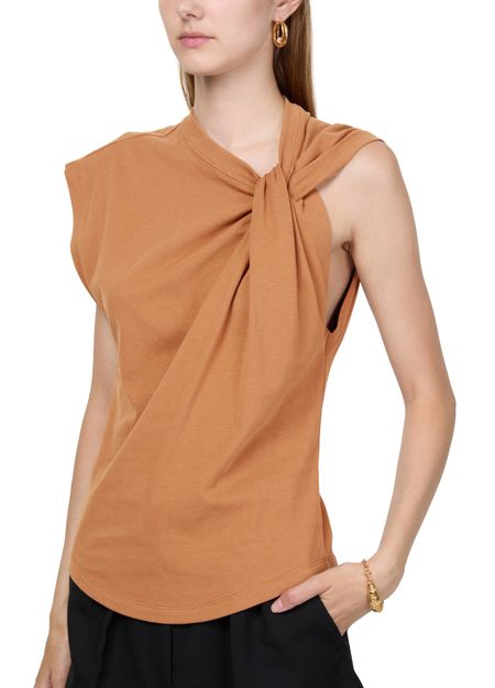 Isabel Marant's Nayda T-shirt is a sleeveless and v-neck piece that exudes sophistication. Crafted with high-quality cotton, this t-shirt features a discreet logo at the back label, adding a subtle touch of elegance. Versatile and timeless, it is a staple piece for any wardrobe, perfect for both casual and formal occasions.