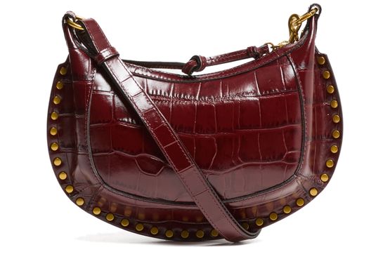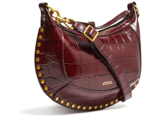 Reveal Isabel Marant's Oskan Moon shoulder bag, a masterpiece in crocodile-embossed leather. This bag features a chic front logo, studded details, and a silver finish. Its adjustable, detachable strap offers versatile styling, while the zipper closure ensures your essentials are secure.